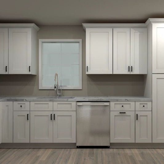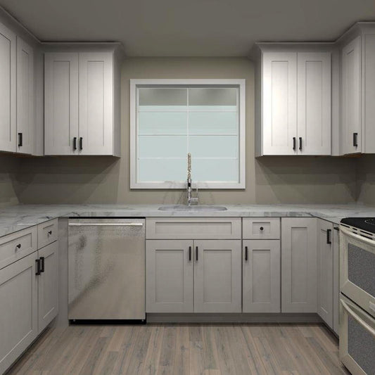 Fabuwood Allure Galaxy Frost 113 by 66 in. L Shaped Kitchen and 36 in. Double Sink