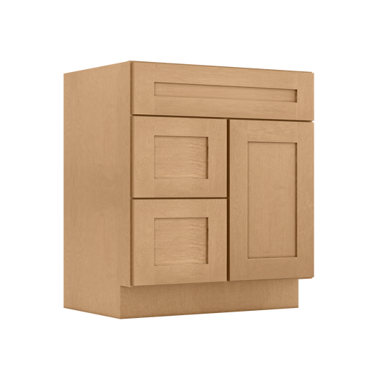 Vanity Sink Base Cabinet with Right Drawers 30 Inch Wide x 21 Inch Deep x 34 1/2 Inch High Shaker Toffee Series