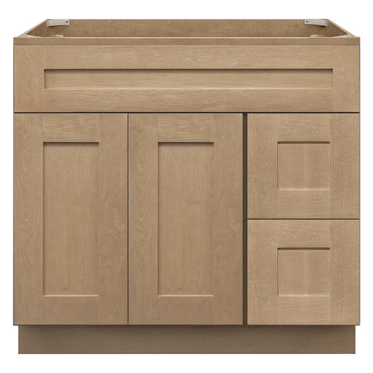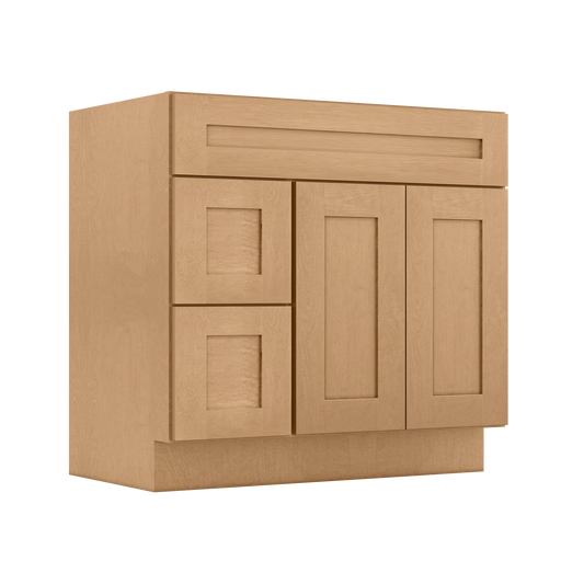 Vanity Sink Base Cabinet with Right Drawers 36 Inch Wide x 21 Inch Deep x 34 1/2 Inch High Shaker Toffee Series