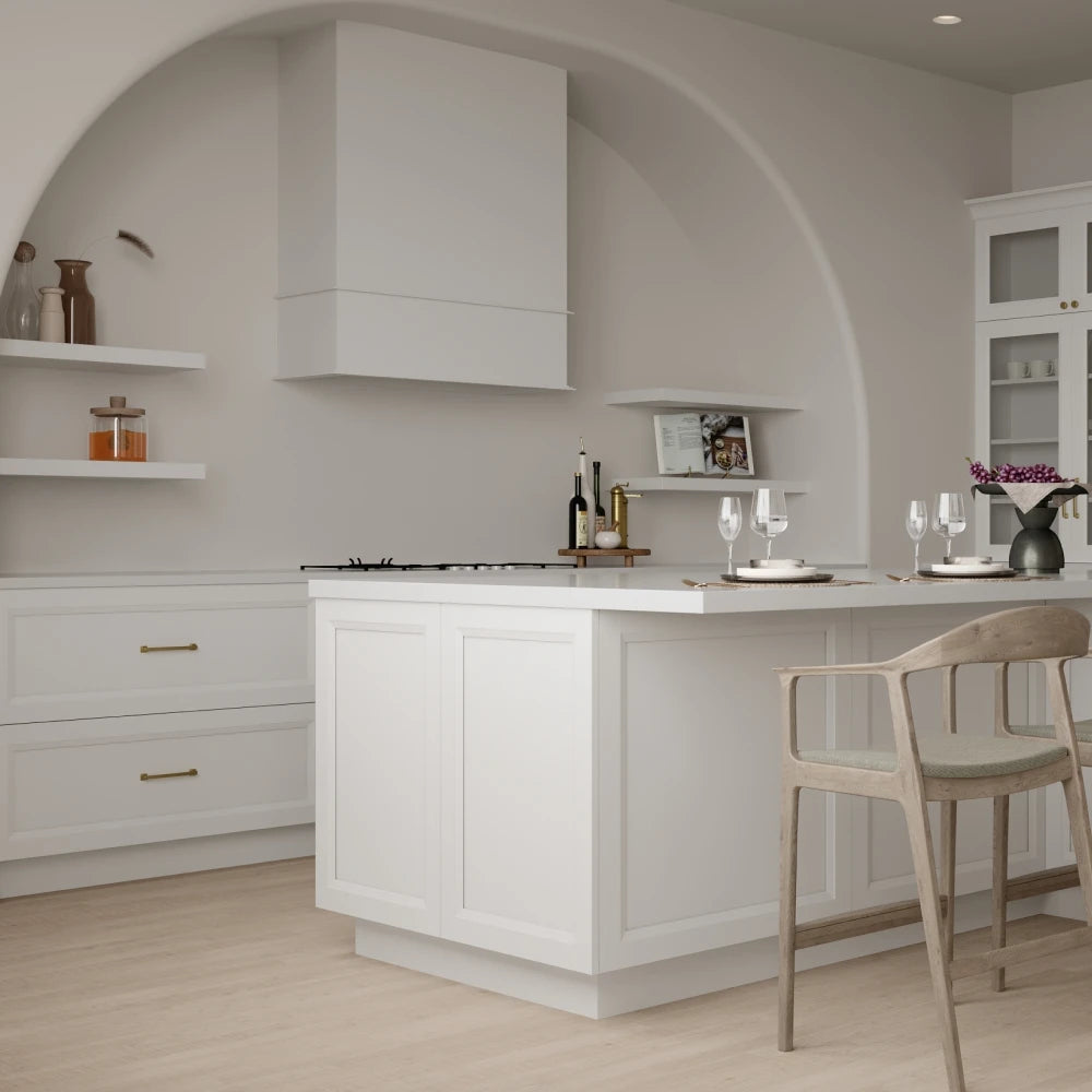 Experience the strength and character of Elegant cabinets. Their wide shaker style and full overlay are complemented by robust wide rails, adding a touch of timeless charm and elegance to any kitchen or bath, whether traditional or contemporary.